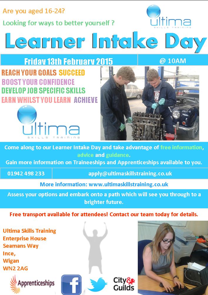 Continuing to tackle the issue of unemployed young people in Wigan, Leigh and Bolton: Ultima Skills Training are all set to host: ‘Learner Intake Day’, Friday 13th February 2015.